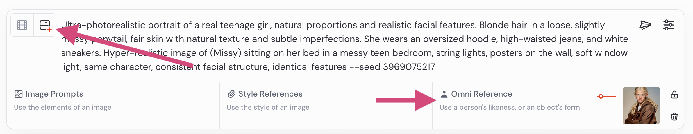 Next, you’ll use the image itself as an omni reference for all future generated images.