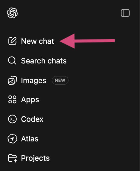 Why it’s helpful: It’s basically the “home” button. Clicking it brings you back to the main ChatGPT experience and sidebar.